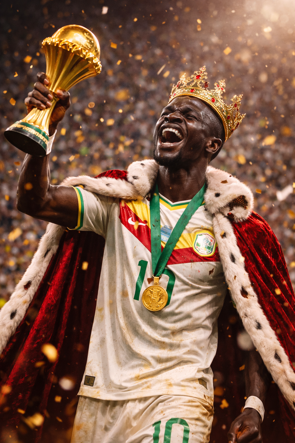 Après son but, Sadio Mané lève les bras au ciel, un regard fier et déterminé. Cette posture n’est pas qu’une célébration : c’est la royauté d’un roi du football africain, respecté par ses pairs, adoré par ses fans et admiré par le monde entier.